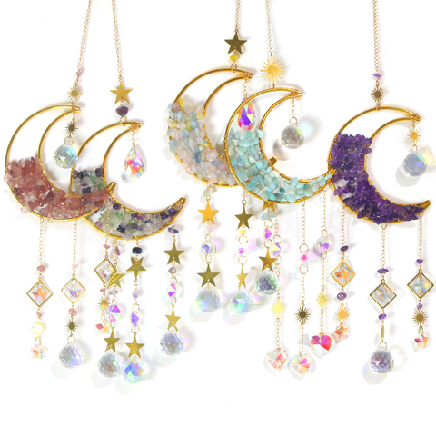 卸売天然クリスタルサンキャッチャームーンサンキャッチャーアメジストローズクォーツサンキャッチャー装飾用